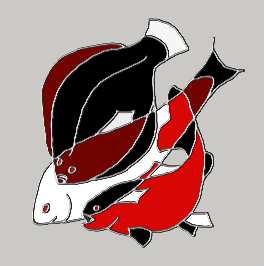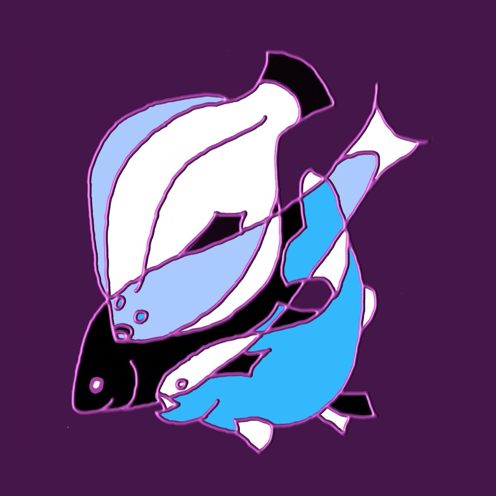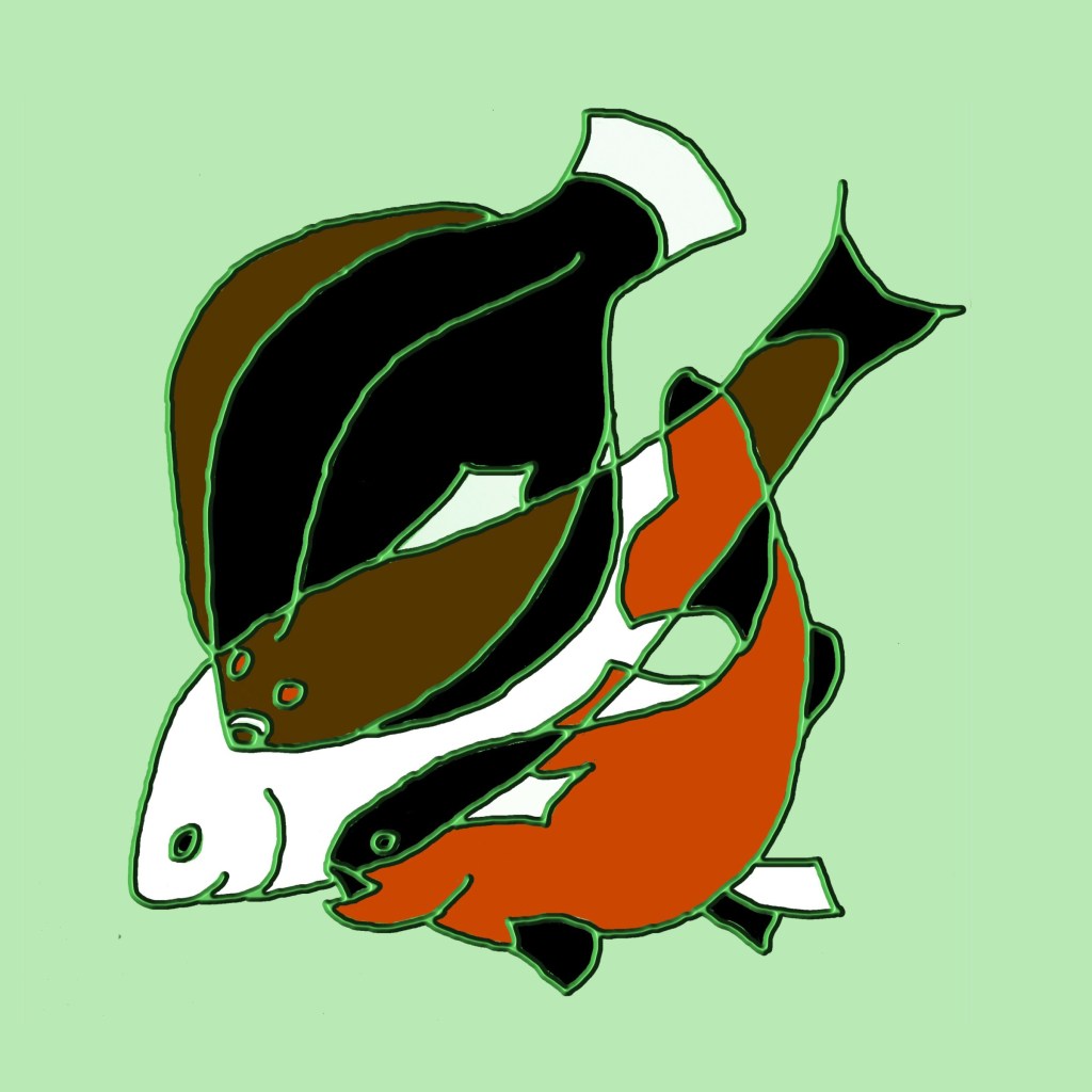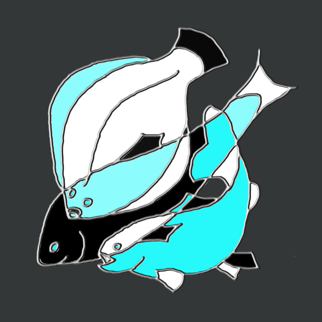 Elaine creates a variety of digital images. These fishes come in a set of four, each 18cms square and framed. They are £50 each or £150 for the full set of four.