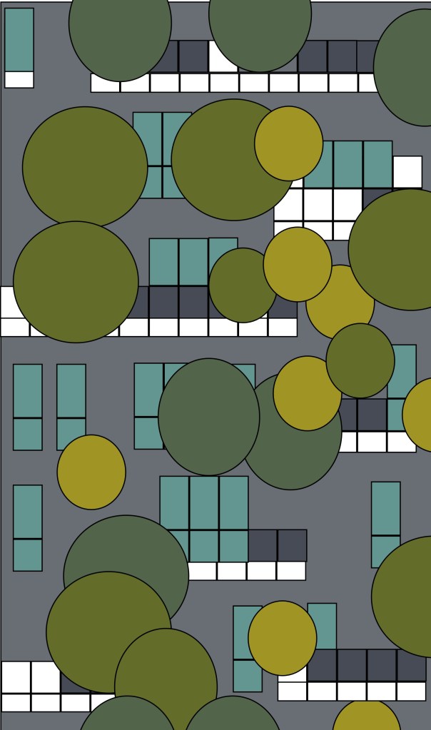 This is Elaine’s digital rendering of the Bosco verticale near to the Milan Porta Garibaldi Building. She sees the contrasting rigid shapes of the building with the organic vegetation shapes as a pleasing mathematical composition.