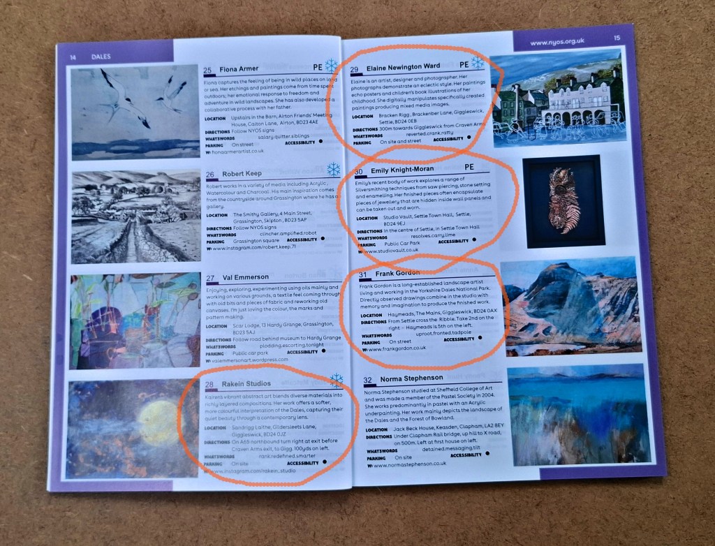 In the brochure (which is online as well as being in hard copy) you can see the names and locations of the four very artists in Settlr/Giggleswick.