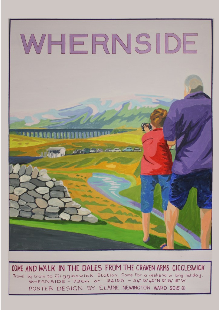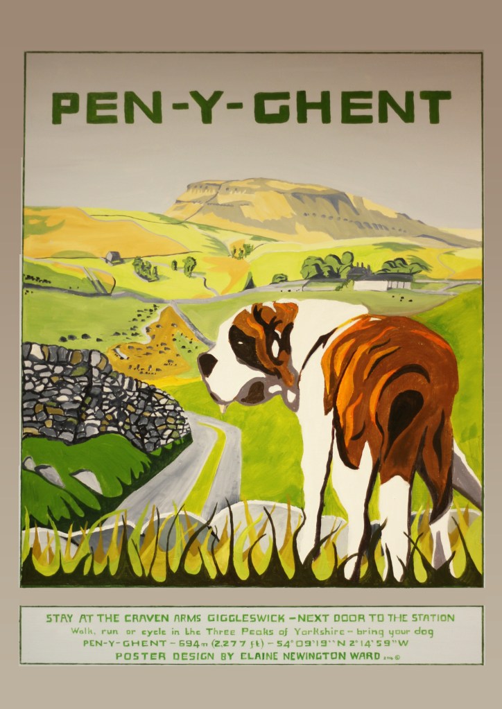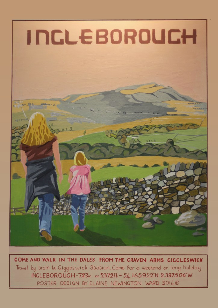 Elaine has many other paintings in her portfolio. These include a set of poster-style Acrylic paintings of The Three Peaks area of the Yorkshire Dales. These are all produced in the style of 1950’s posters. They are large pieces of work measuring about 78cms x 105cms unframed. These originals as seen below, are £1400 each. (£4000 for the set of three) .They have been on permanent exhibition for a number of years and are locally very well-known. Giclée prints can be made to order at A3, A2 or A1 starting at £150 each.